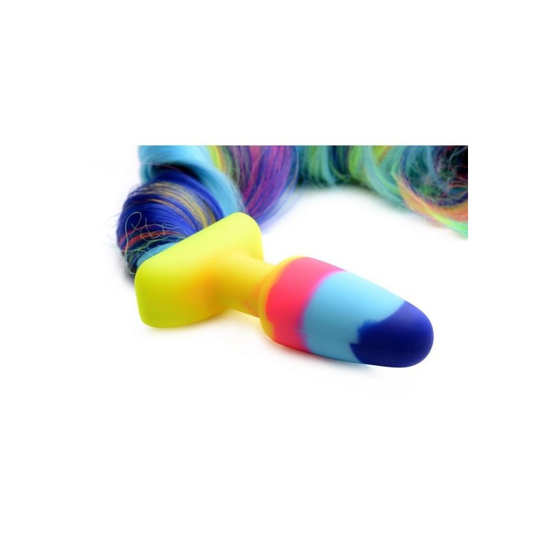 Awaken your inner Unicorn with this gorgeous Rainbow Unicorn Tail Anal Plug! The long and lavish tail has an enthralling rainbow texture sure to catch the eye of your partner or your audience. The long length allows for braiding and other fun hair styles for you to play with! Perfect for role play in the bedroom.
